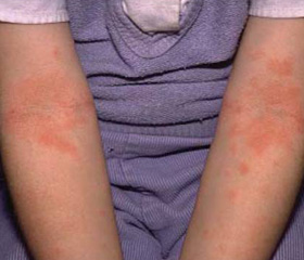 В городской детский аллергологический центр обратились родители ребенка 5 лет, который страдает атопическим дерматитом с 4 месяцев. Жалобы на зудящие высыпания в области локтевых, коленных суставов и тыльной поверхности кистей, периодические высыпания на коже; интенсивный зуд вечером и ночью, беспокойный сон; снижение аппетита; плаксивость; частые простудные заболевания. Выявлены также жалобы на неустойчивый стул, вздутие живота и сниженный аппетит.