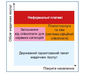 Замість декларації про надання всієї медичної допомоги безоплатно держава бере чітке зобов’язання надавати визначений обсяг медичних послуг. Громадяни знають, що конкретно вони можуть отримати безоплатно, а за що необхідно сплатити — скільки, як саме і за яких умов (офіційна, проста і зрозуміла система співоплати). Медичні послуги в рамках гарантованого пакета надають постачальники всіх форм власності, отримуючи оплату за надані послуги від єдиного національного замовника.