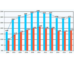 Тривожна тенденція останніх двох десятиріч — зменшення кількості здорових дітей у країні, що відбувається на тлі зменшення чисельності дитячого населення з 10 775 729 дітей 0–17 років у 1994 році до 7 614 006 у 2016 році при високих рівнях захворюваності і поширеності хвороб (рис. 2) [4, 7].