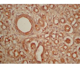 В почках в вышеуказанных локализациях было отмечено возрастное увеличение количества виментин-положительных клеток, поэтому иммуногистохимическая реакция у плодов была расценена как слабая («+»), а у новорожденных — как умеренная («++»).